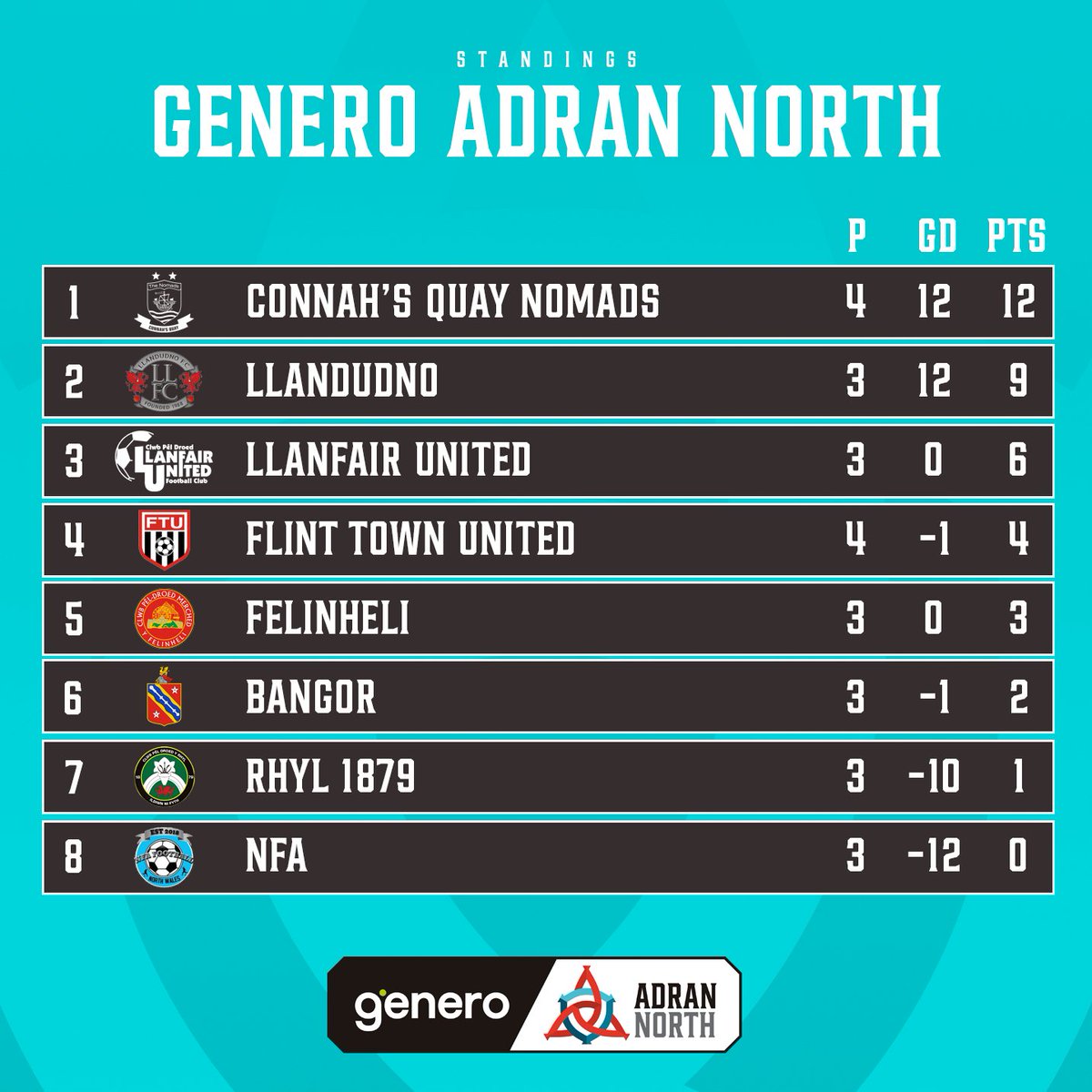Genero Adran League Tables